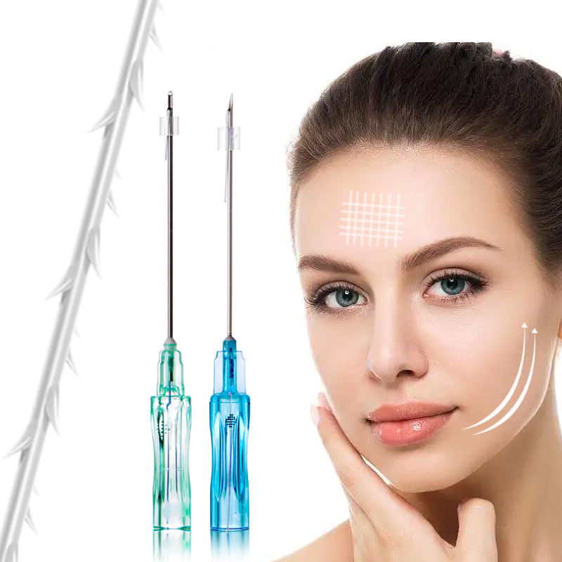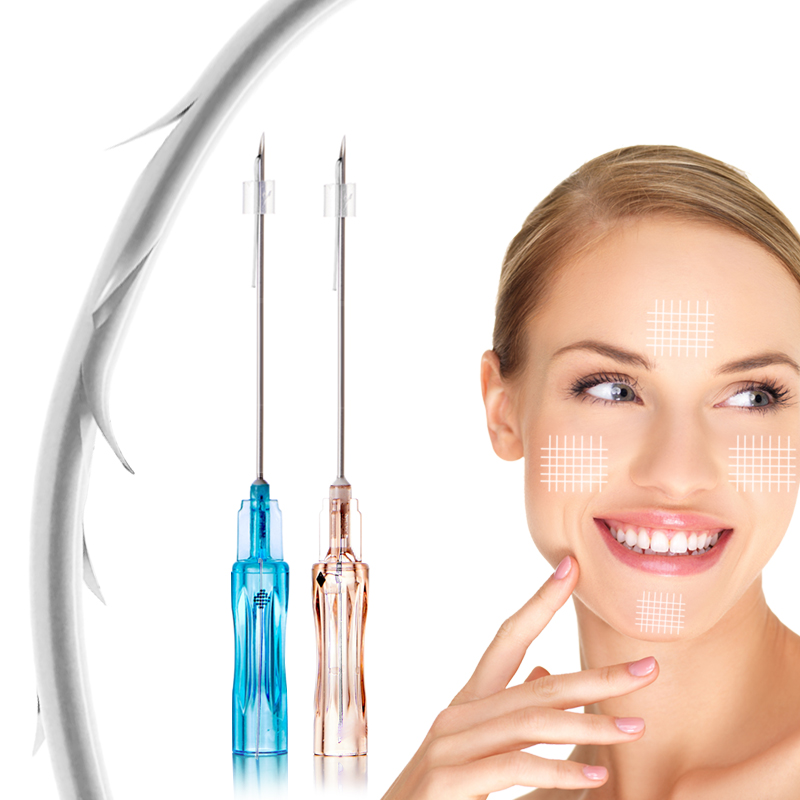 The 360-dregree helically barbs with 120/90/60 degree interval are designed to maximize tensile and anchoring strength, lifting the soft tissue, to achieve an effective and long-lasting result. Sharp tip needle delivers a immediate effect.