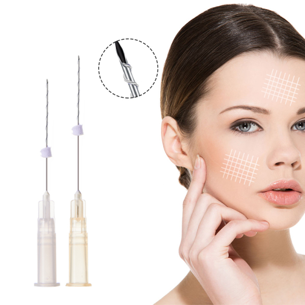 Tornado Screw is a twisted pair of PLLA threads combined in a spiral form in a needle. 2 screw shaped sutures hold skin tightly and stimulate collage twice more than normal Screw type.